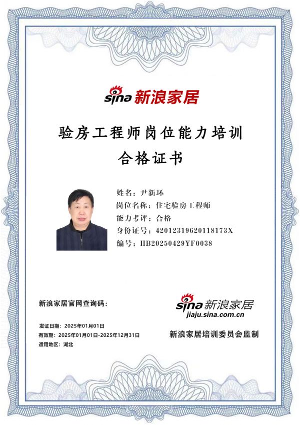 新浪家居验房工程师岗位能力培训合格(湖北地区)——尹新环