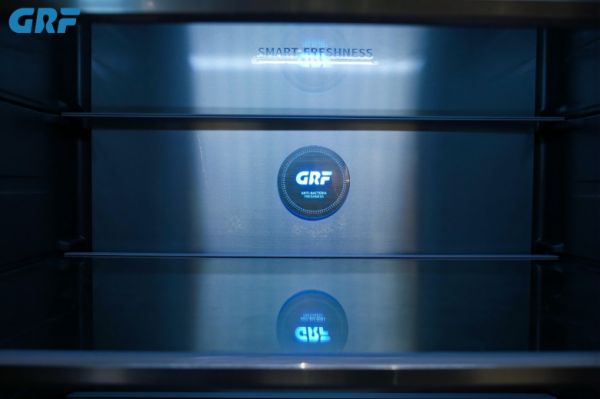 在空气质量管理方面,GRF采用阿基米德螺旋风道专利技术,实现了多风道独立循环,杜绝不同温区之间的气味交叉。风道内部更集成了净味模块,可持续分解异味分子,确保箱内空气持久清新,避免食材之间相互串味。