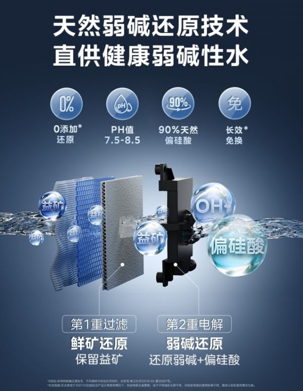 基于这一发现,美的首创推出“0添加弱碱还原技术”,以AI技术自适应当地水质,通过AI智控精密电场还原OH-,定向富集水中弱碱性矿物离子群,使PH稳定在7.5-8.5弱碱区间,全程0添加生成,还原天然弱碱水,实现了与世界优质天然水源在矿物质成分与活性上的“1比1复刻”。这不仅解决了传统RO技术过度过滤导致矿物质流失的痛点,更超越了后置矿化技术的不稳定性,标志着净水技术从“被动过滤”迈向“主动构建”的科学跨越。