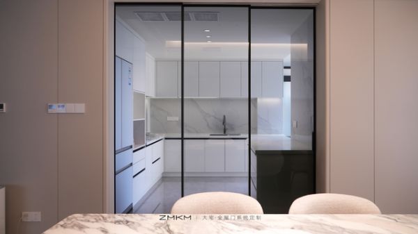 其实,理想的厨房移门应该是这样的:打开时,厨房与客厅完全连通,形成一个开阔的整体空间;关闭时,能有效分隔功能区,却又不影响光线和视觉延伸。而ZMKM芝麻开门家居仅用一扇门解决这些痛点。