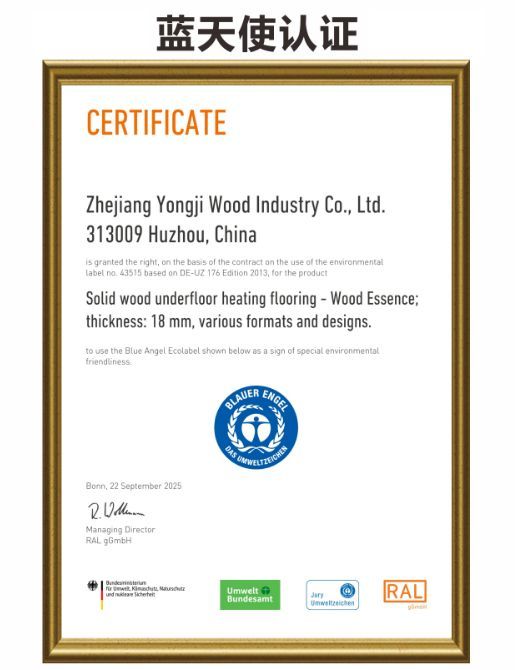 永吉地板获“FSC泛欧森林认证、欧盟CE认证”