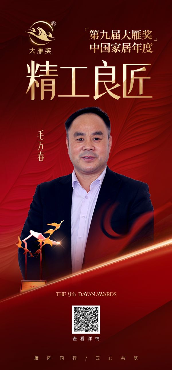 喜报!毛万春先生荣获「第九届大雁奖·中国家居年度精工良匠」奖项