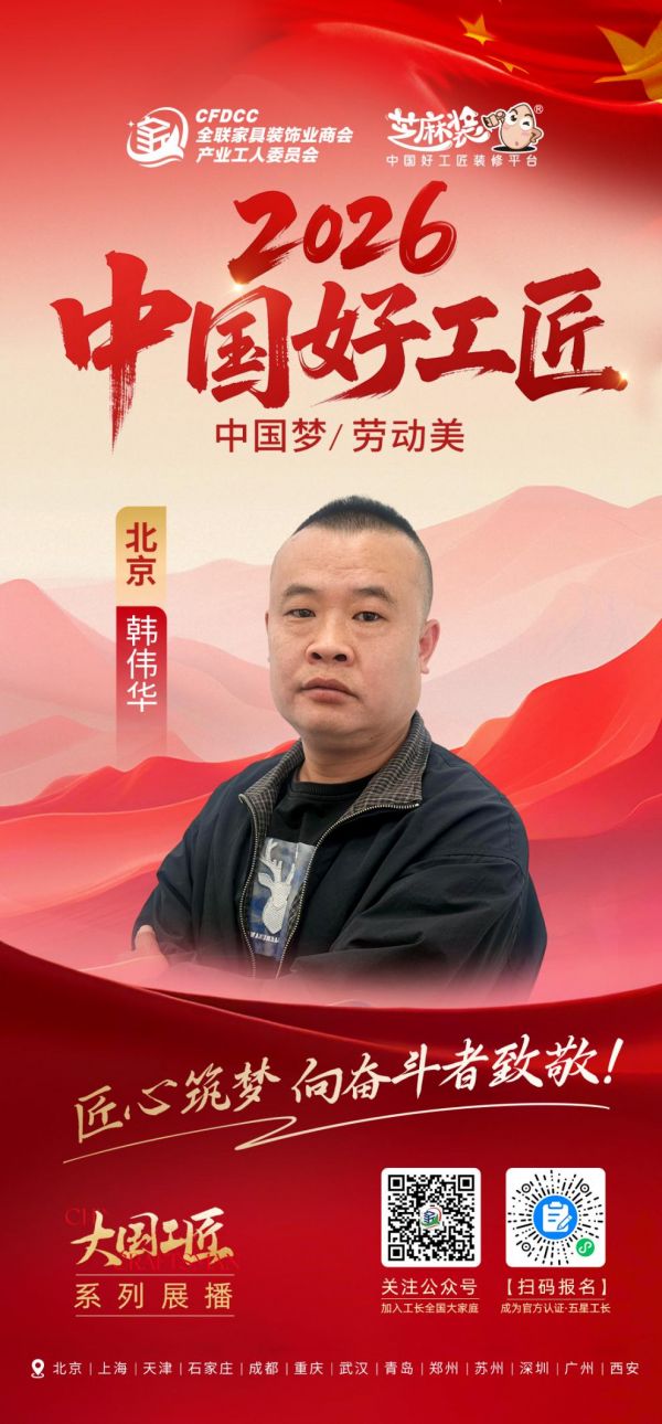首页 家居生活馆 【2026中国好工匠系列展播】韩伟华:二十四年从油工到全能工长,以朴实匠心穿越行业周期,凭...